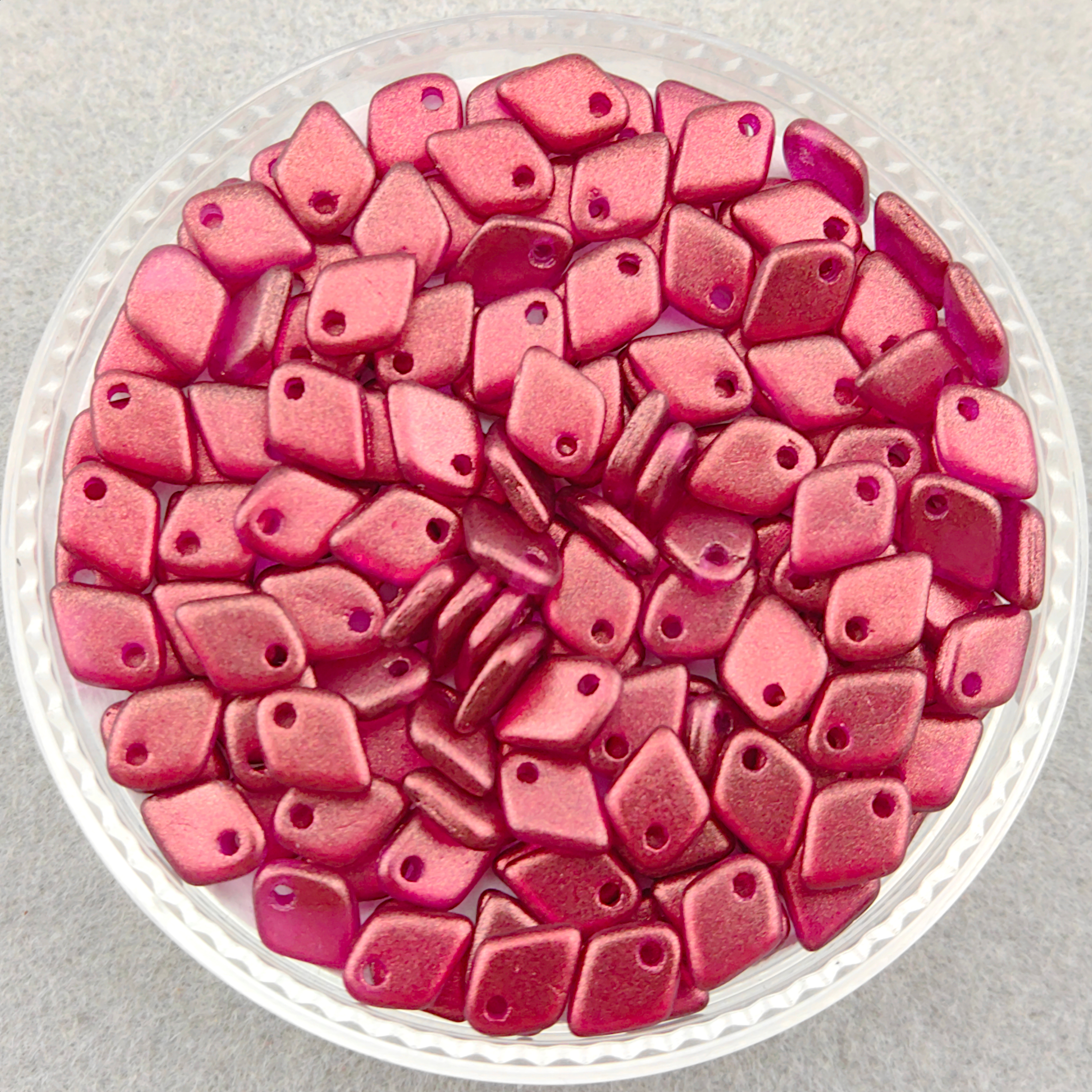 Обратите внимание: бусины изготовлены методом прессования. Технологический процесс допускает незначительные отличия в форме и размере, а также небольшие неровности или нюансы напыления, которые являются особенностью производства чешского стекла и не считаются браком.