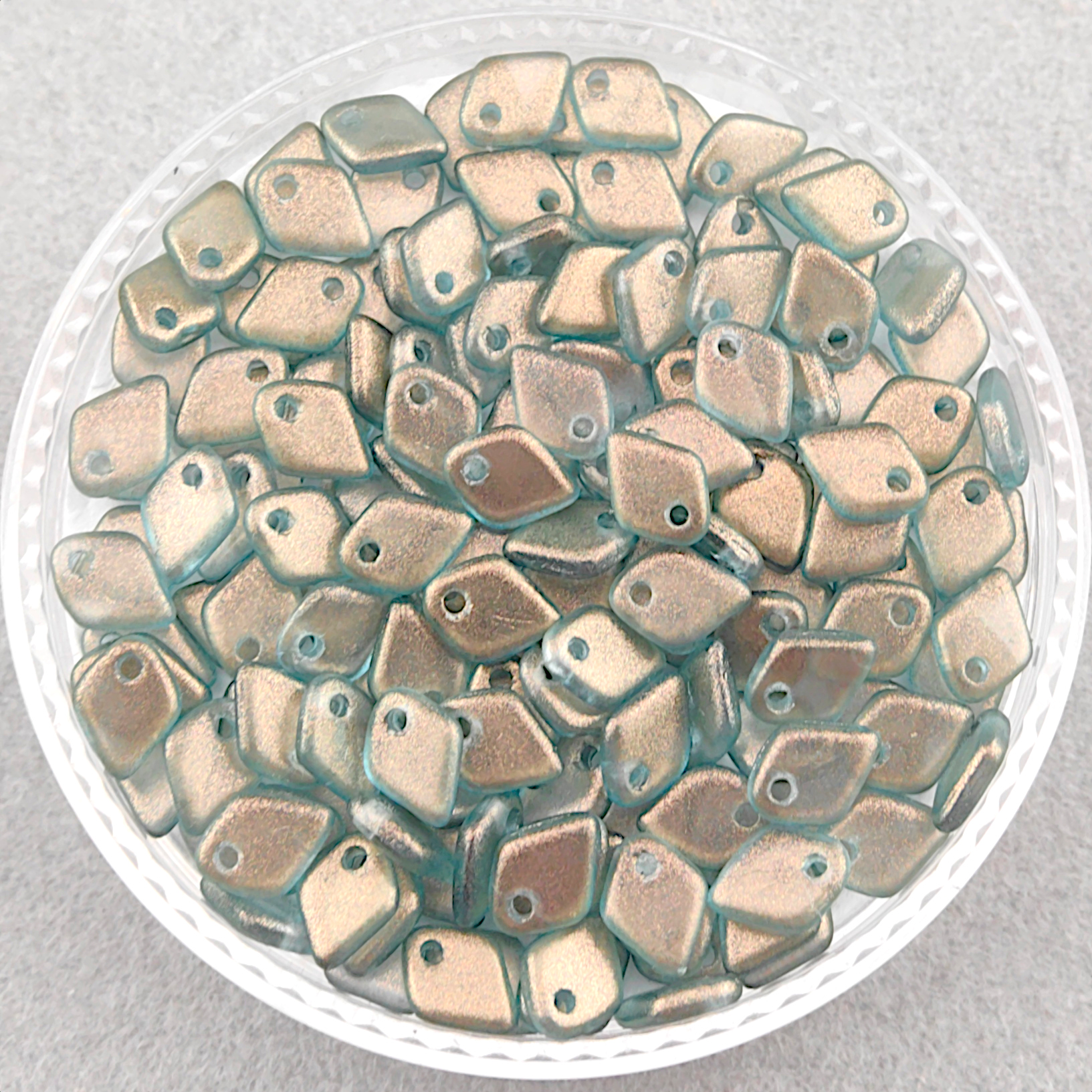 Обратите внимание: бусины изготовлены методом прессования. Технологический процесс допускает незначительные отличия в форме и размере, а также небольшие неровности или нюансы напыления, которые являются особенностью производства чешского стекла и не считаются браком.