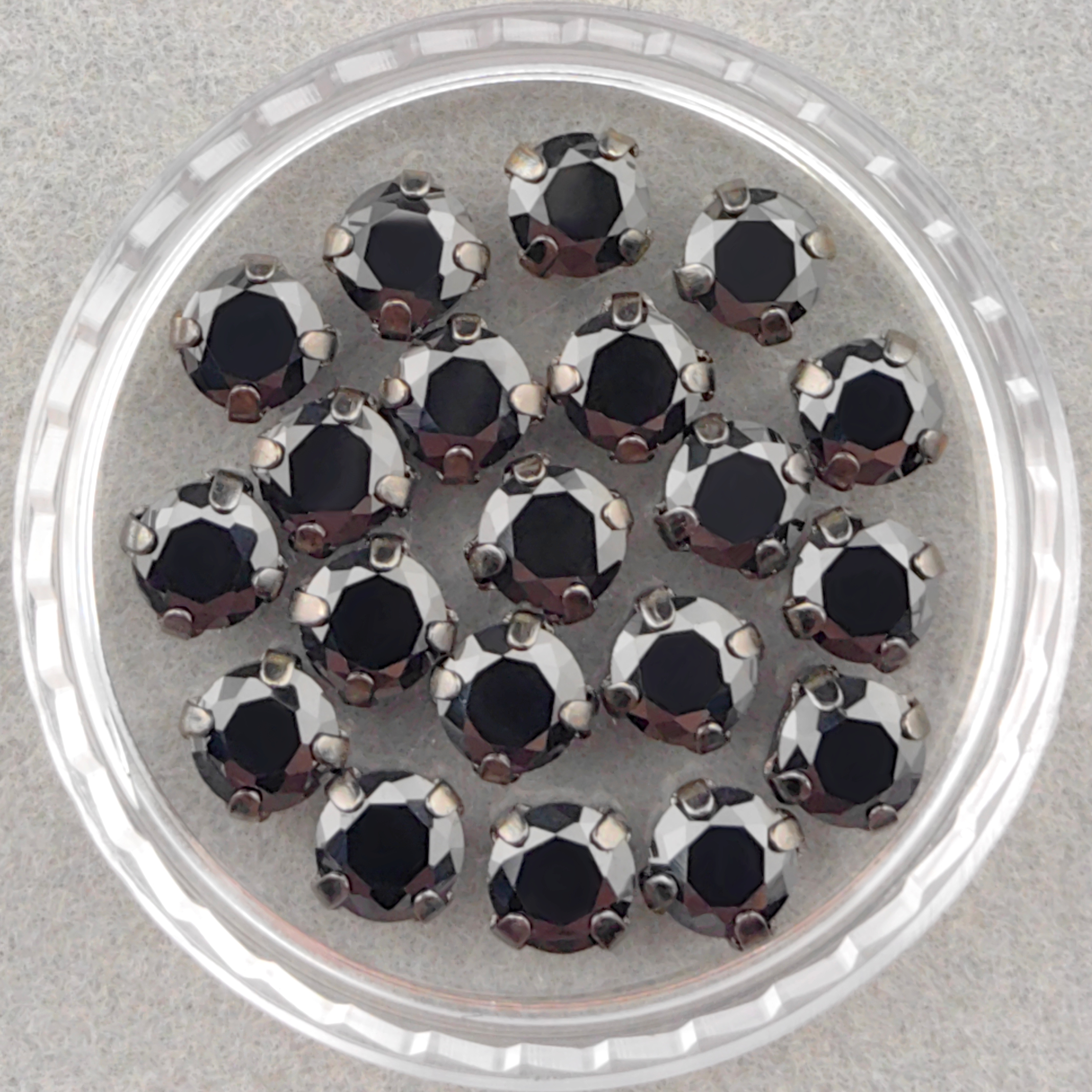 Фианиты шатоны в оправах, черный/темная сталь