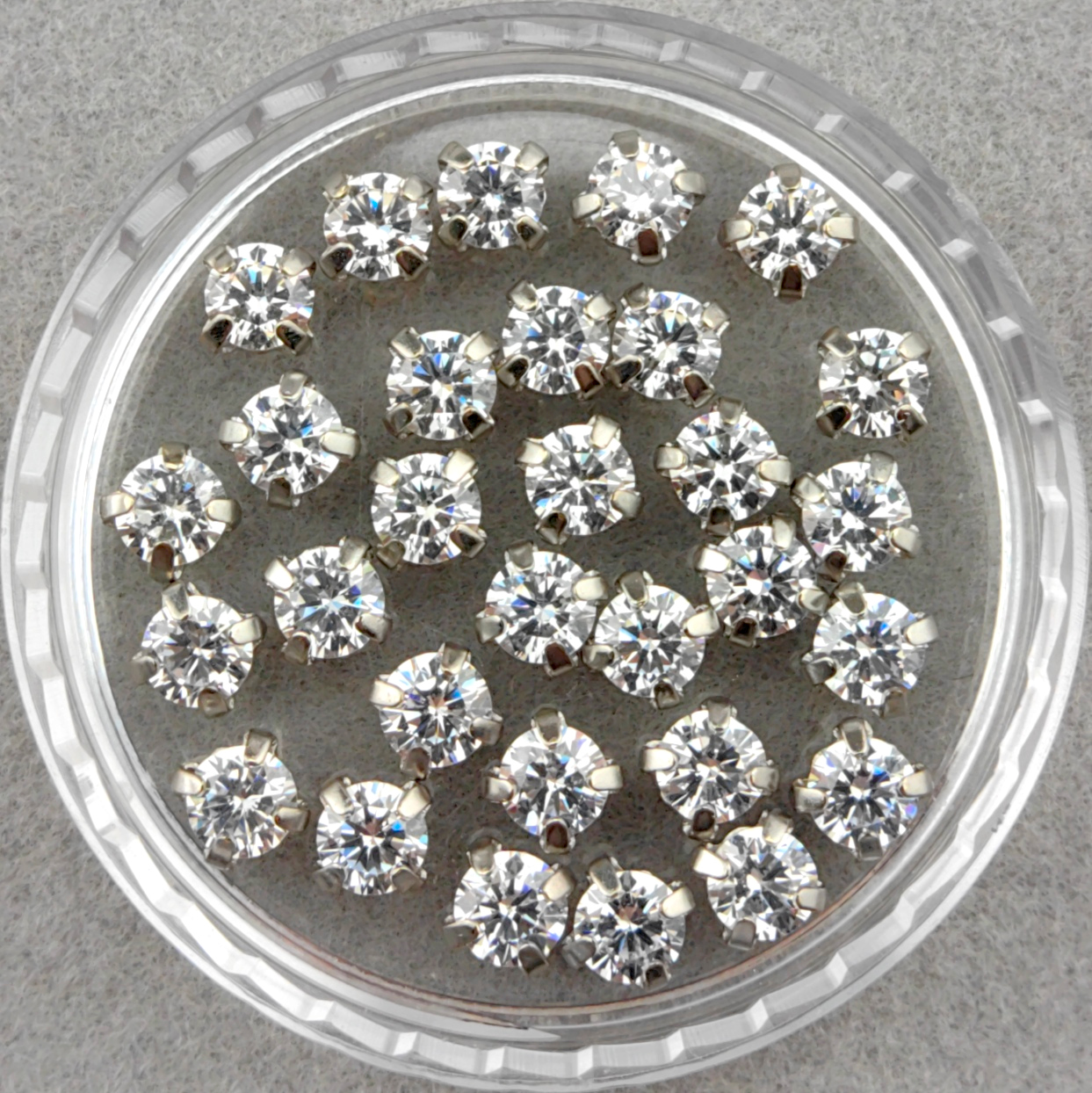 Фианиты шатоны в оправах, Crystal White/Platinum