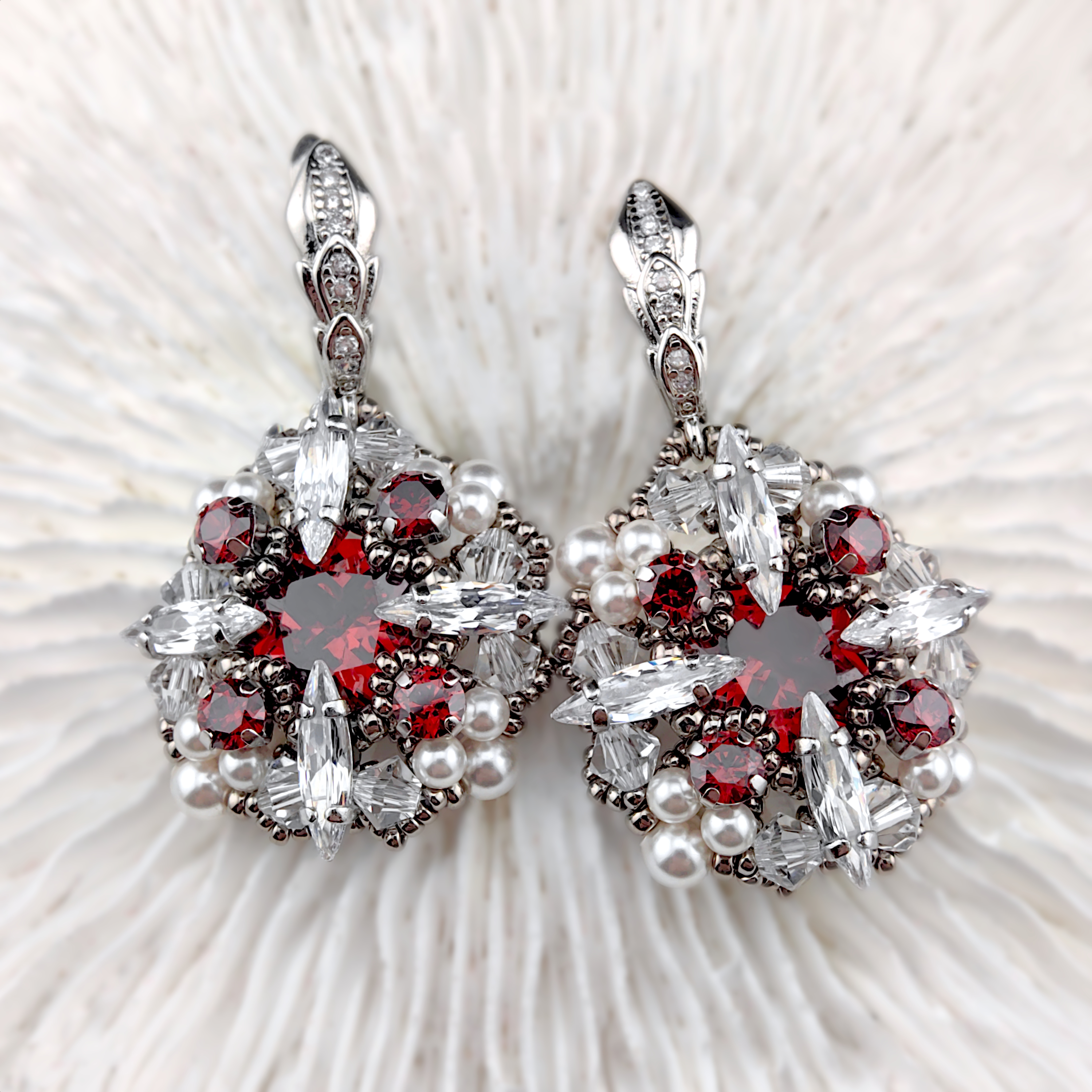 • Фианиты кушоны 10 мм, цвет Гранатовый — 2 шт;