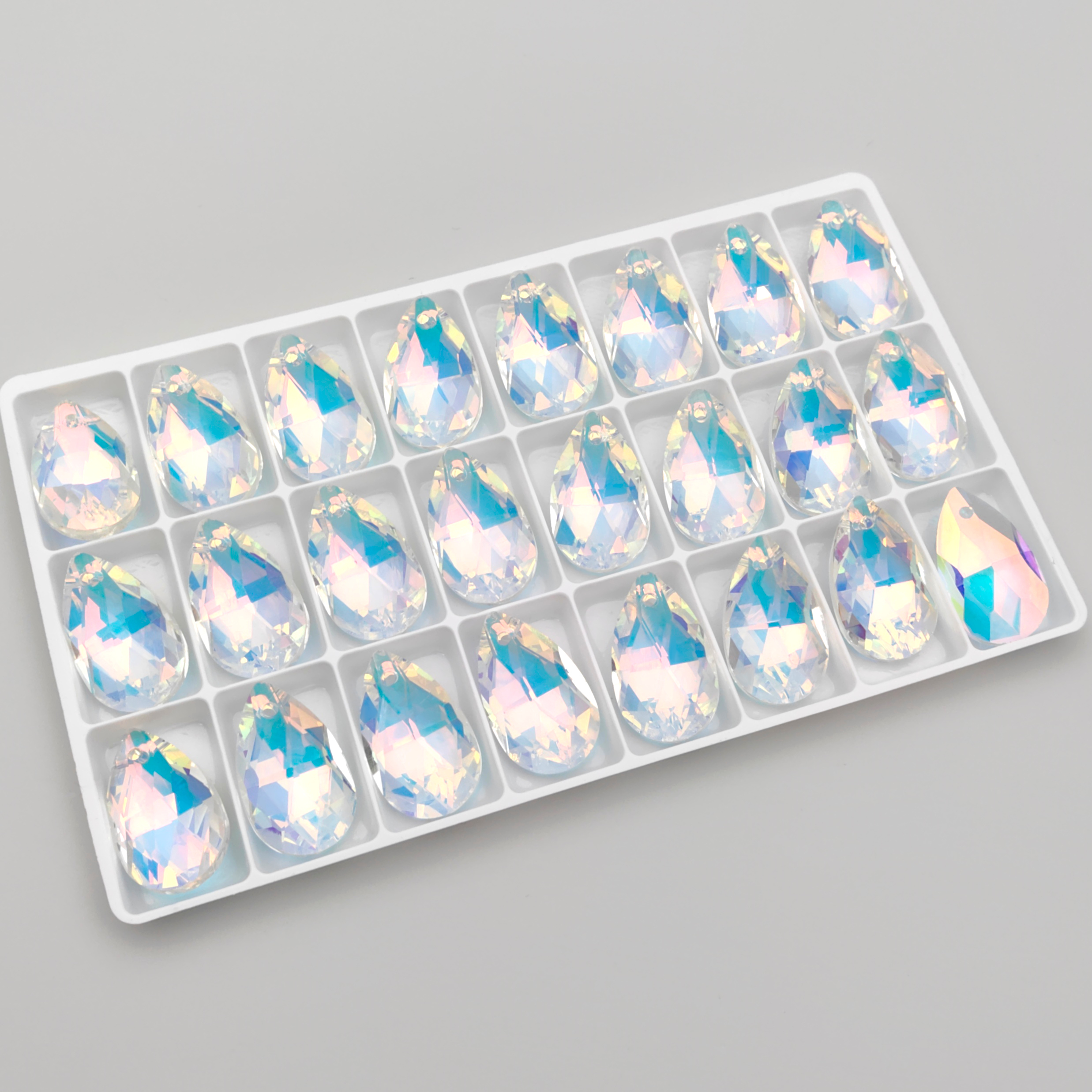 Подвеска капля 22 мм с полупрозрачным радужным покрытием на обратной стороне.