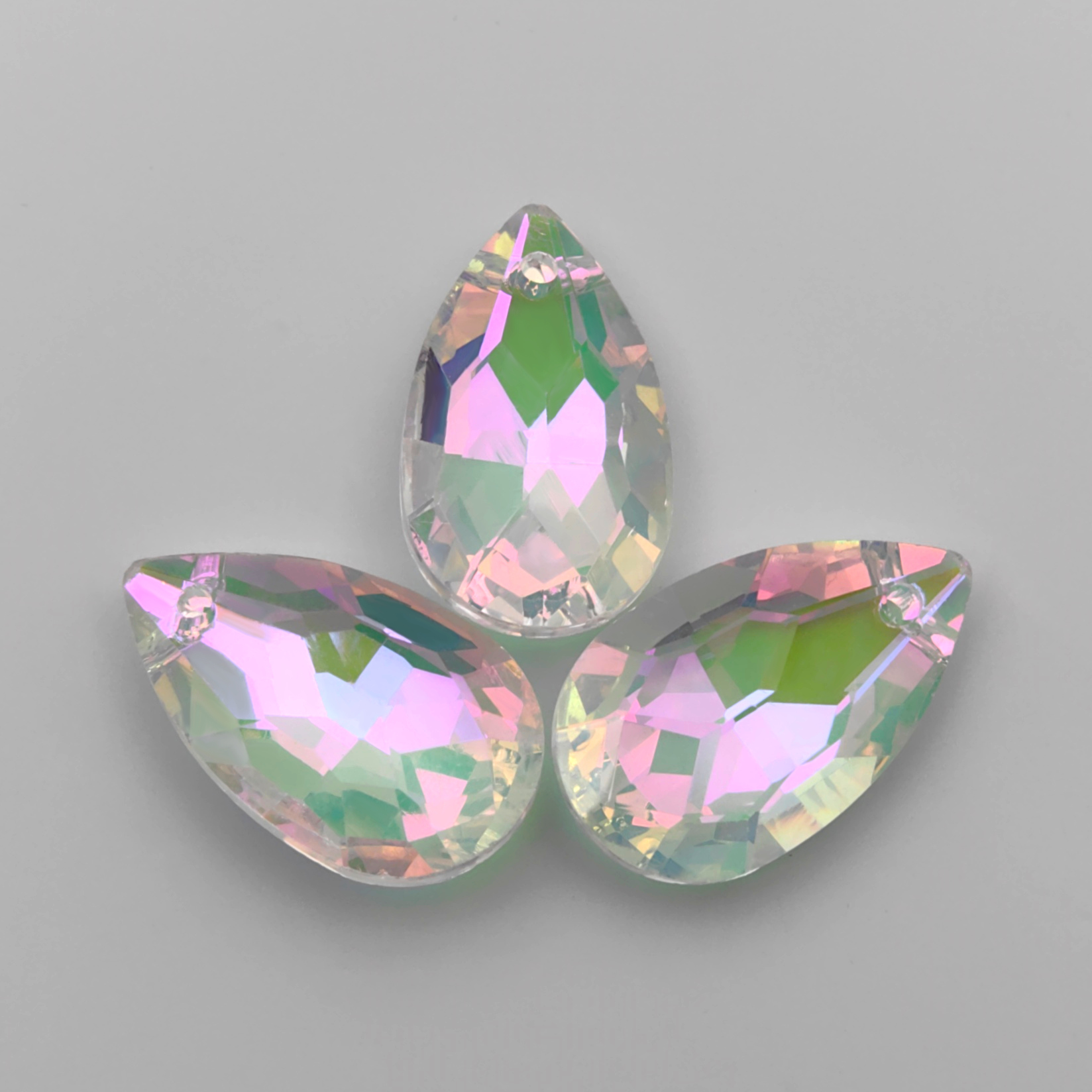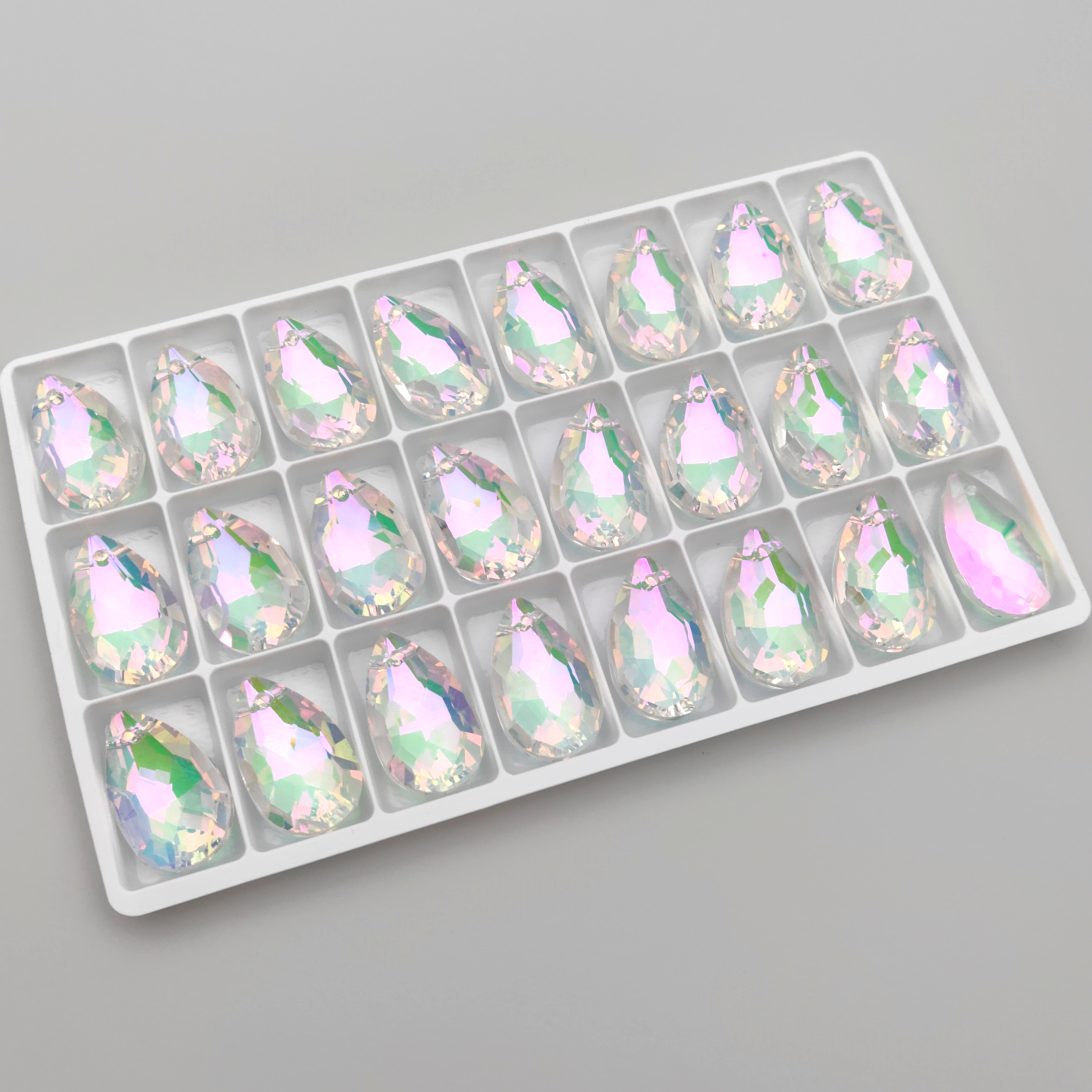 Подвеска капля 22 мм с полупрозрачным радужным покрытием на обратной стороне.