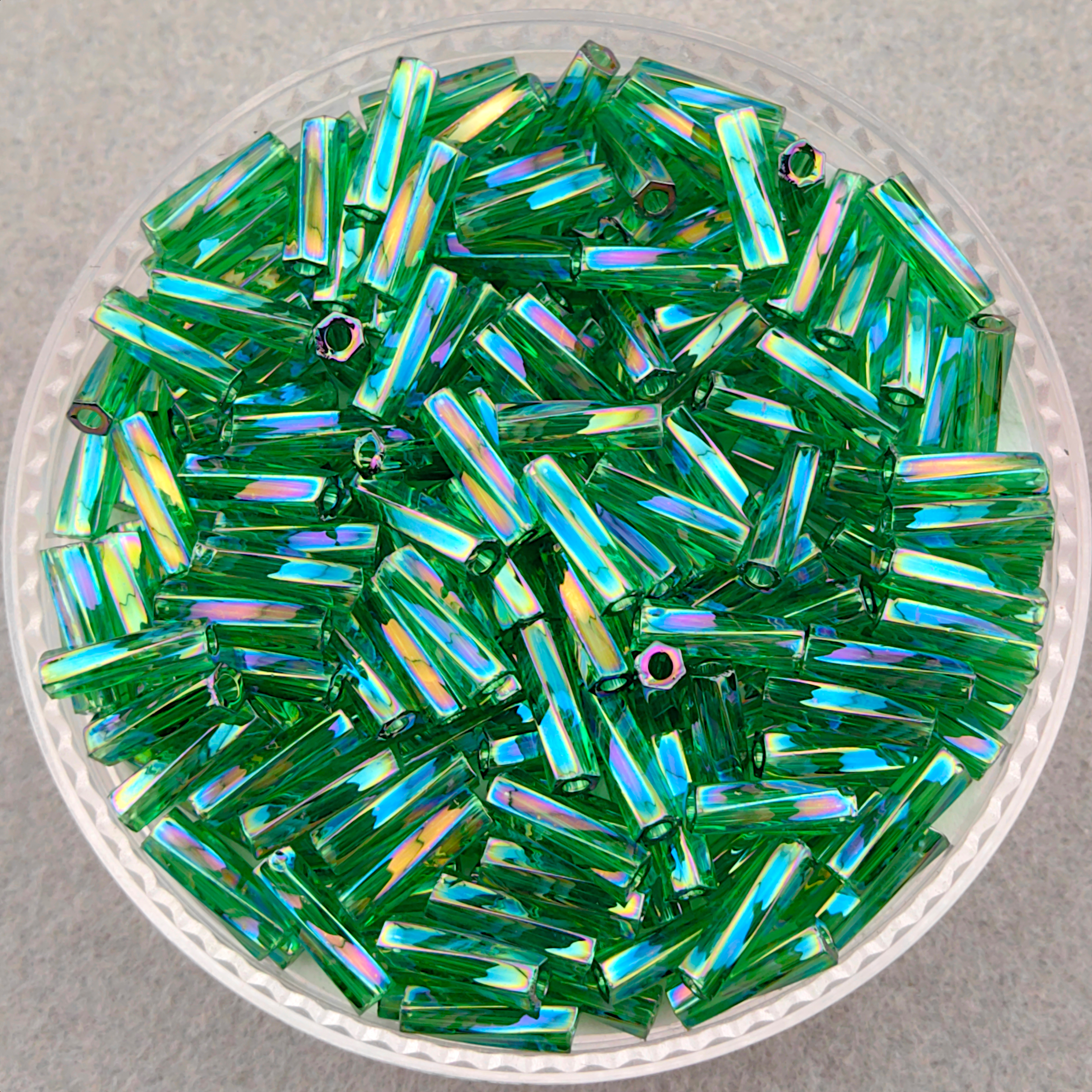 Стеклярус Miyuki Twisted Bugle, цвет #0179 (зеленый, прозрачный радужный)